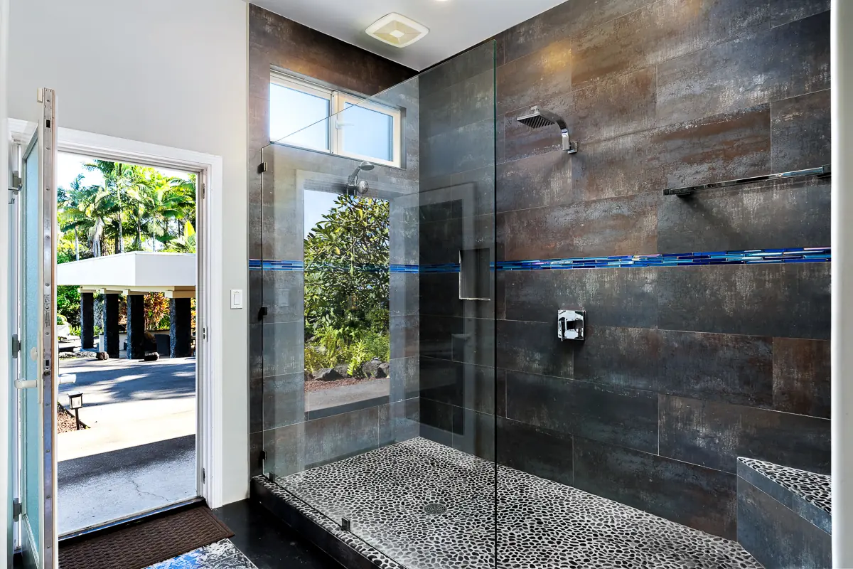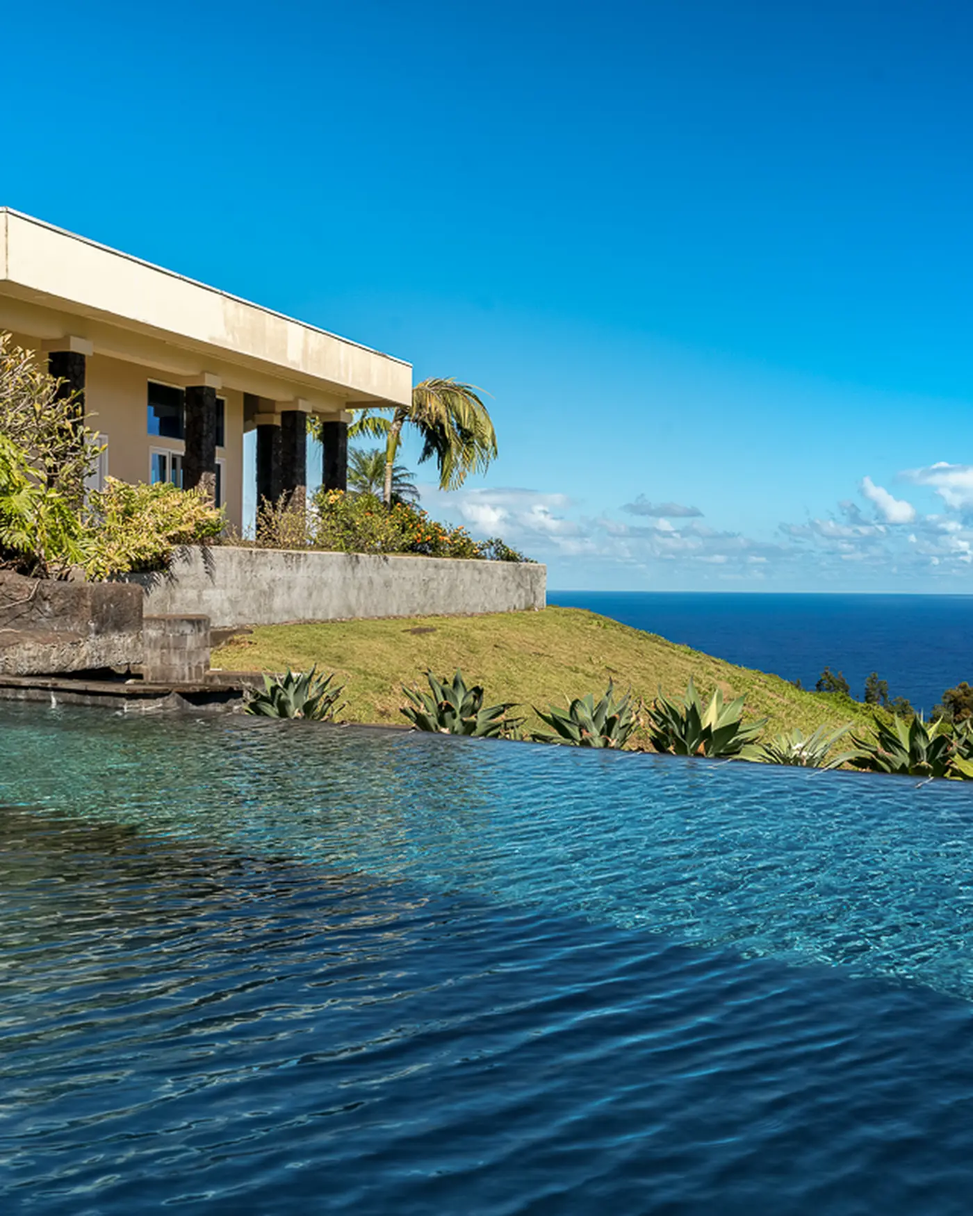 The main residence is designed for refined resort living. Four private primary suites, an ocean-facing great room, a gourmet kitchen, theater, and billiards room all open to dramatic coastal vistas. A separate pool house adds a fifth suite. Outdoor living defines the experience with an infinity-edge pool, lava rock waterfall, hot tub, and a true swim up bar, surrounded by expansive covered lanais that capture the sunrise and the movement of whales offshore.