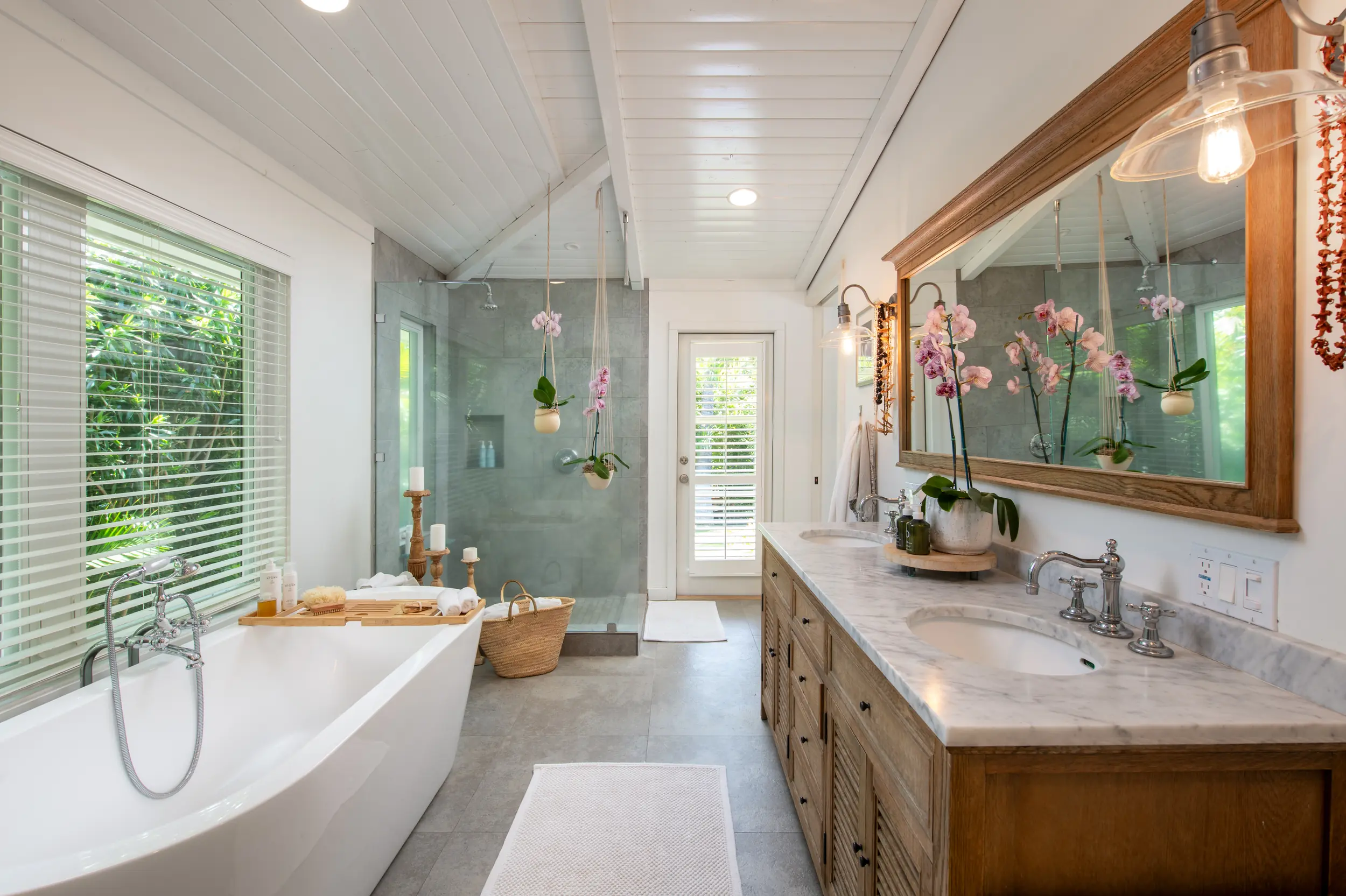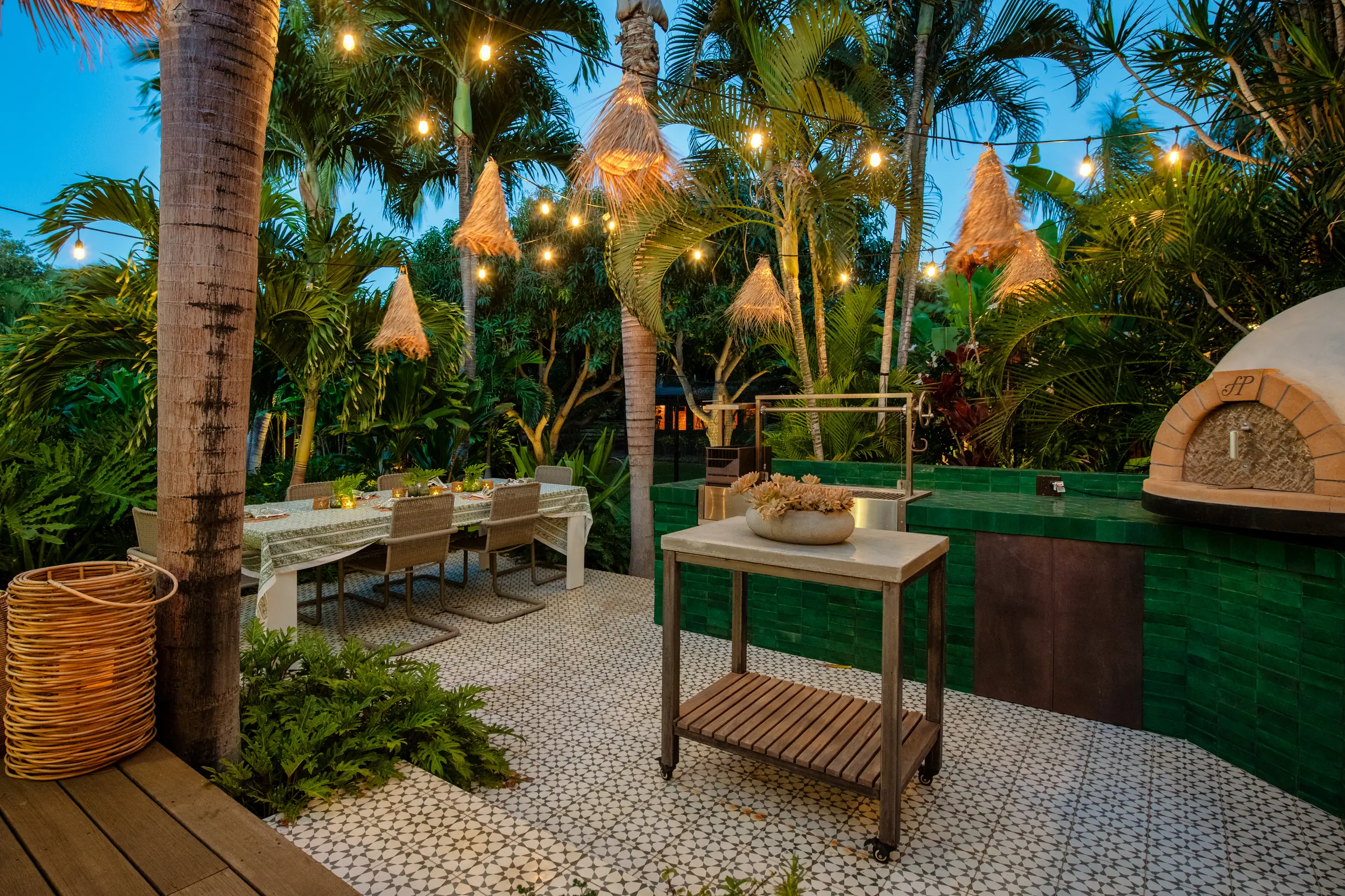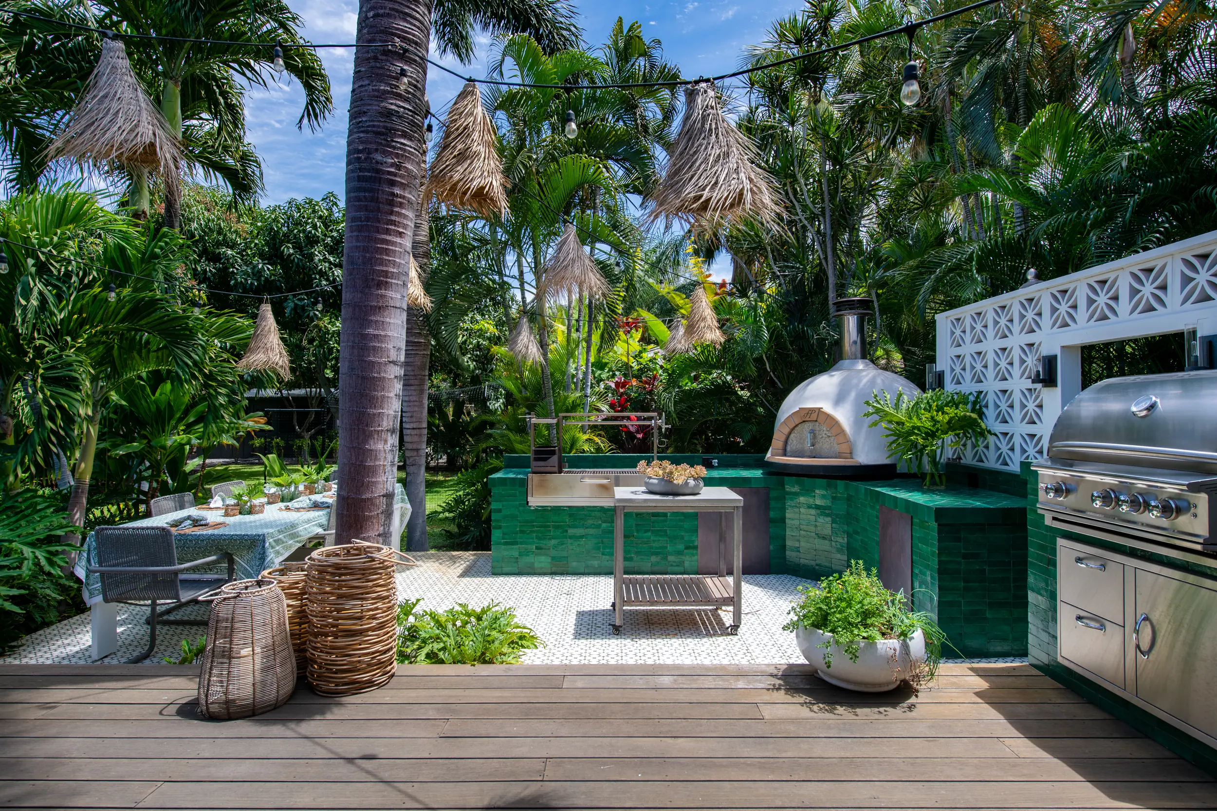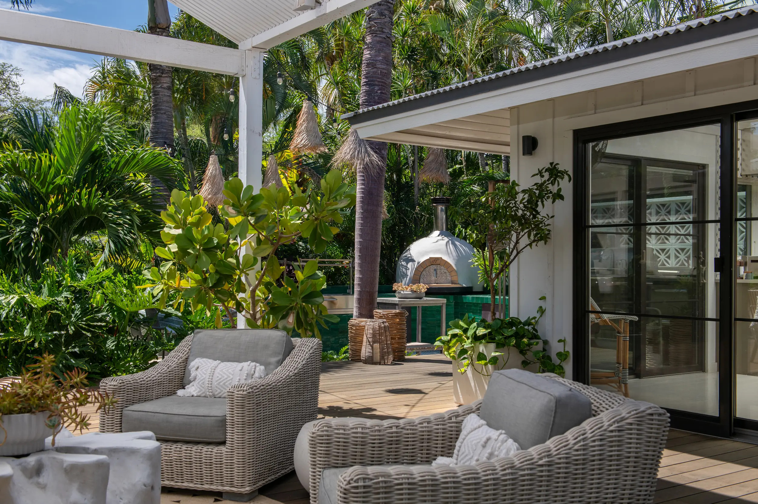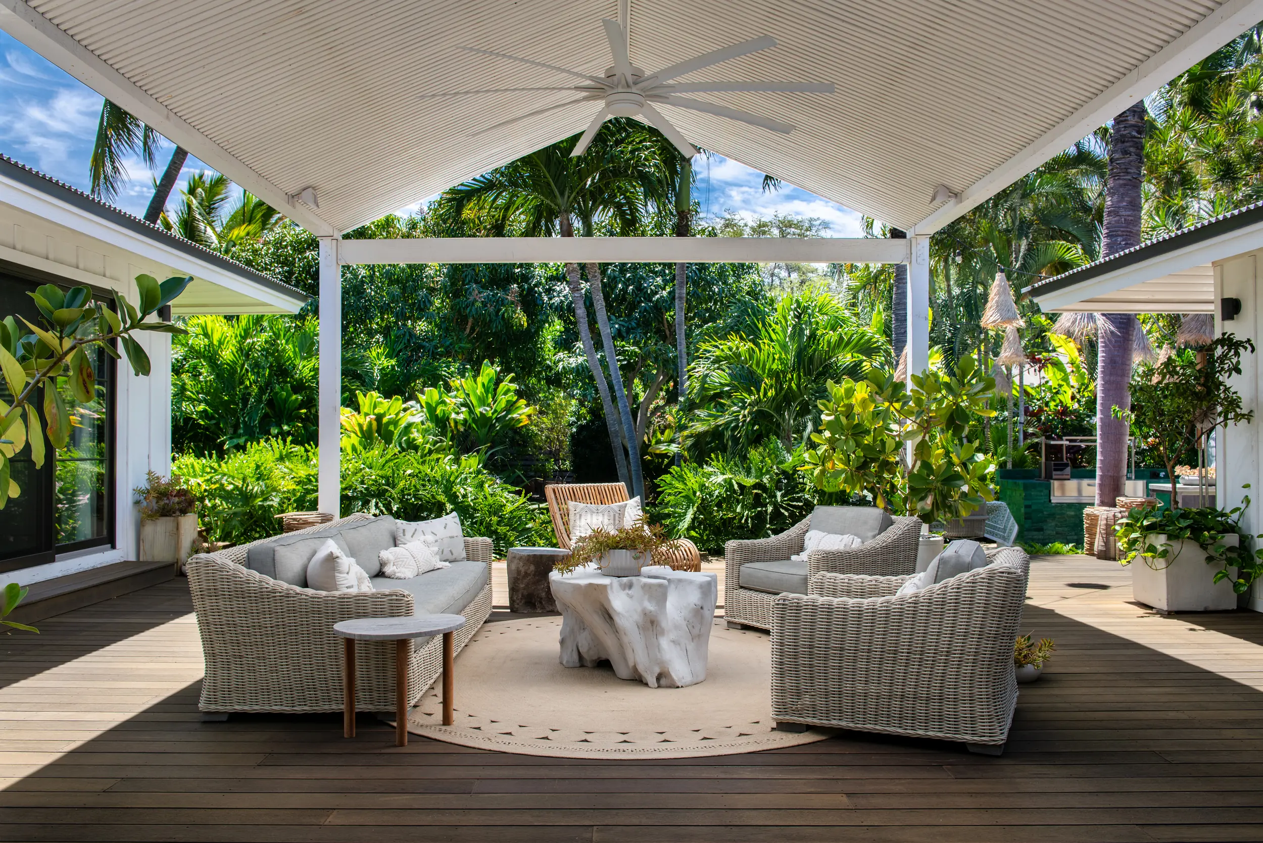 An expansive great room with open-beam ceilings and a chef’s kitchen crafted in collaboration with a celebrated restaurateur set the stage for effortless island entertaining. Five ensuite bedrooms, including two with private entries, provide flexibility and privacy for guests or extended stays. Every detail reflects thoughtful design, from the custom finishes and full air conditioning to the harmonious indoor and outdoor transitions that define the home’s architecture. Encircled by mature gardens, the property unfolds as a private resort sanctuary. A central covered pavilion connects to an outdoor kitchen terrace with an imported pizza oven and BBQ, creating the ideal setting for al fresco dining. The dedicated wellness retreat features a cedar sauna, cold plunge, hot tub, fitness studio, and meditation or yoga pavilion, creating an indulgent environment for rejuvenation. Additional highlights include County-approved pool plans, advanced water filtration, integrated security and Sonos sound systems, a one-car garage, and a rare, fully transferable B&B permit, the only one of its kind along the Kohala Coast. With no HOA dues and unparalleled privacy, this residence represents the pinnacle of refined beach living in Hawai‘i.